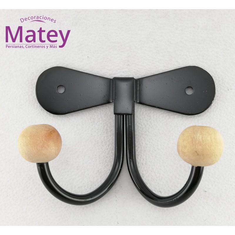 PERCHERO DOBLE COLONIAL COLOR NEGRO, HECHO EN ACERO Y MADERA, CON MEDIDA DE ALTO 83 MM Y BASE 117 MM.