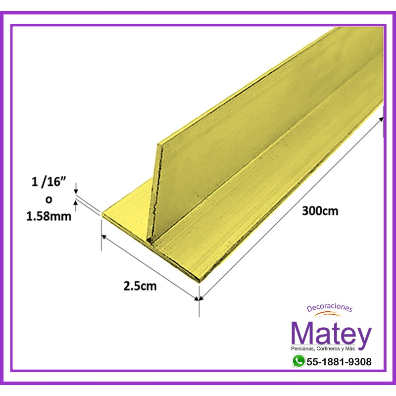 PERFIL "T" DE 1" EN ALUMINIO NATURAL, CON MEDIDAS DE ANCHO: 25MM, ALTO: 25MM, ESPESOR: 1/16", PESO: 810 GRAMOS